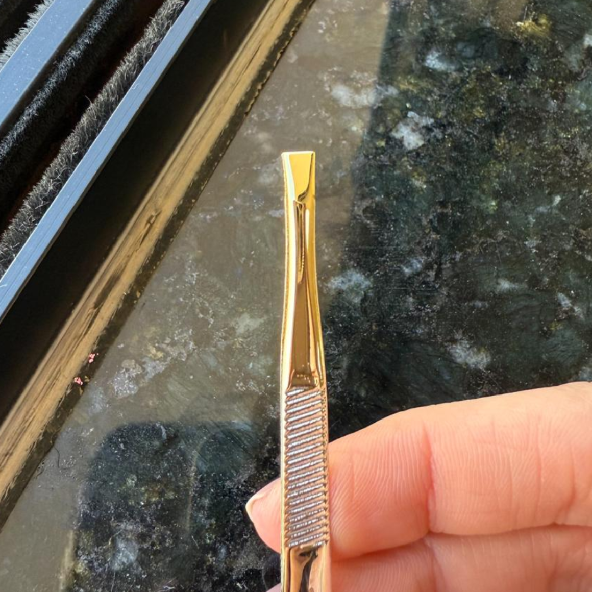 Pinça Macrilan PI-4 especialmente desenvolvida para remoção de pelos da face e corpo. Com acabamento dourado e corte reto para uso pessoal e profissional com praticidade e segurança.