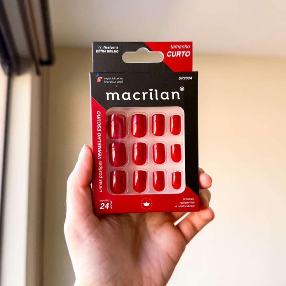 Unhas Postiças Macrilan UP208A curtas especialmente desenvolvidas em uma versão colorida para uma aplicação rápida e segura. Indicadas para uso pessoal e profissional.