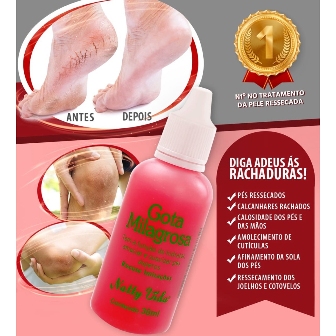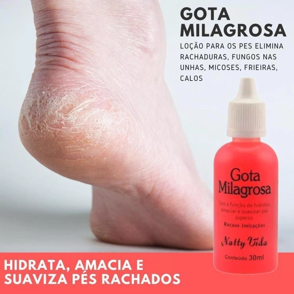 Loção Gota Milagrosa tem a função de hidratar amaciar e suavizar os pés ásperos.