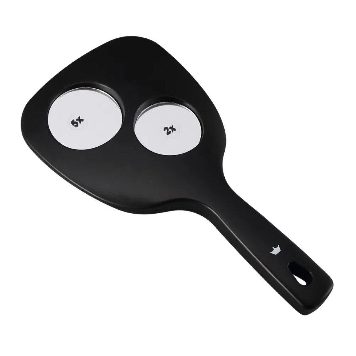 Espelho Triplo de Mão da Macrilan ES-02 especialmente desenvolvido com 3 espelhos, um com visualização natural, um com aumento 2x e um com aumento 5x, indicado para visualização do rosto e da pele com maior facilidade e praticidade.