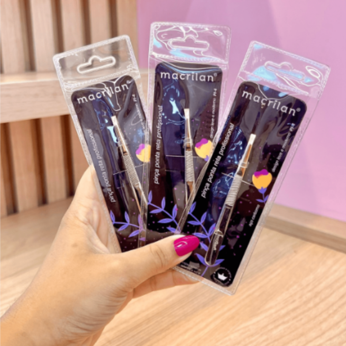 Pinça Macrilan PI-2 especialmente desenvolvida para remoção de pelos da face e corpo. Com acabamento dourado e corte reto para uso pessoal e profissional com praticidade e segurança.