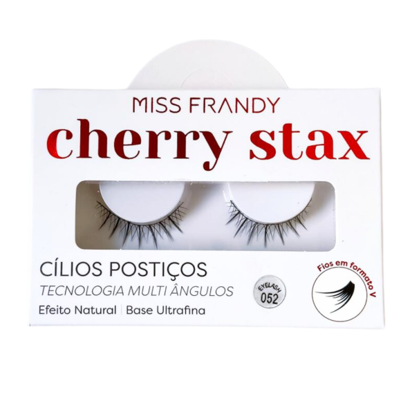 Os cílios Cherry Stax da Miss Frandy garantem um olhar natural, com cílios afiladose segmentados em comprimentos que se repetem de forma espaçada garantindo um olhar elegante e natural.