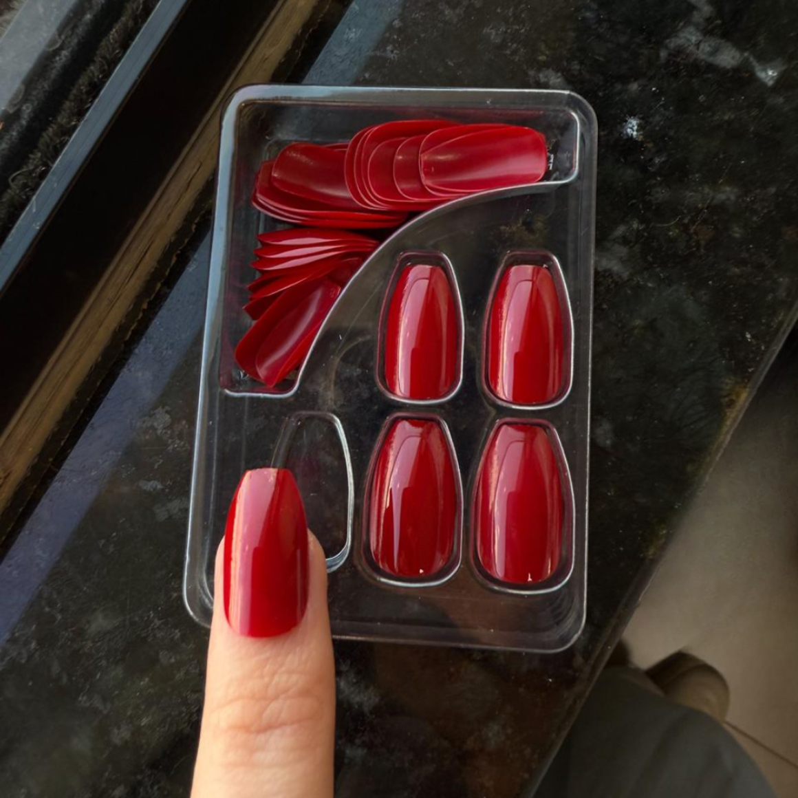 Unhas Postiças UP401 estilo bailarina Macrilan cor Vermelho escuro