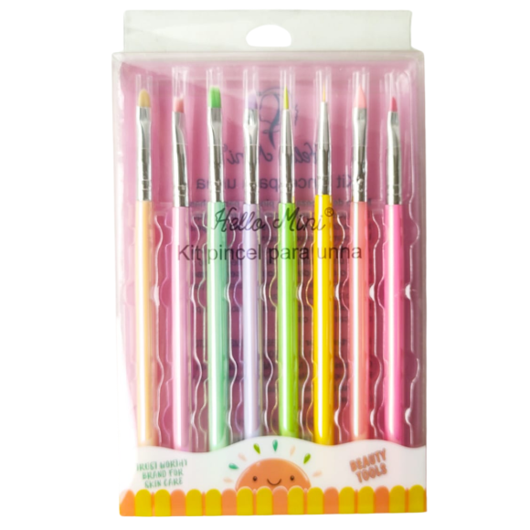 KIT PINCEL P/ UNHA ARTISTICA E GEL HELLO MINI KIT1521 (C/8)