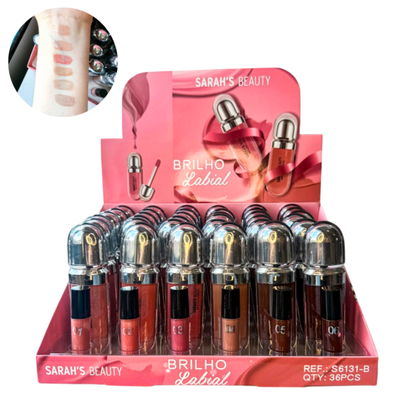 36 BRILHO GLOSS (SEM GLITTER) SARAH'S BEAUTY (B) S6131B BOX+PROVADORES