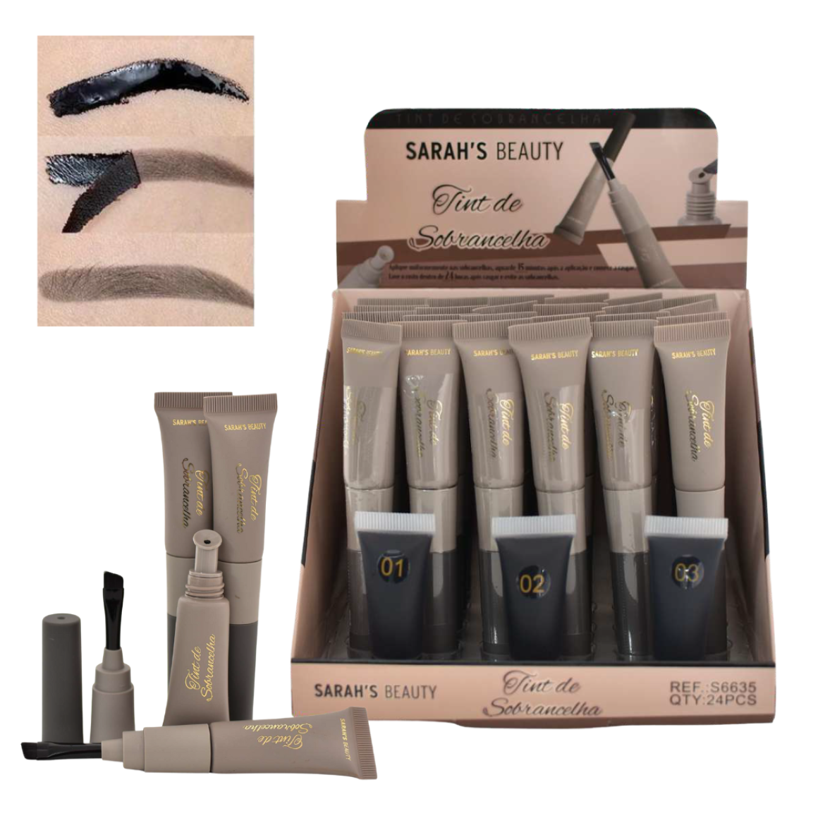 24 TINT SARAH'S BEAUTY S6635 SOBRANCELHA PEEL OFF BOX COM PROVADORES