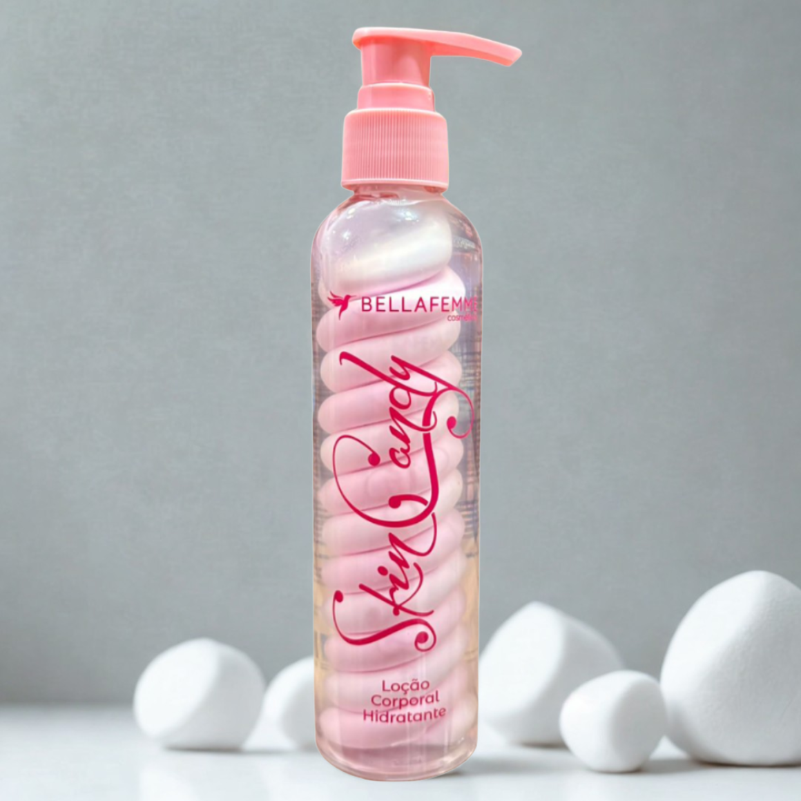 Mais do que uma loção hidratante, a Skin Candy é uma experiência sensorial: a textura cremosa e fluida desliza na pele e a estética lúdica desperta sorrisos. Um produto que traz hidratação, leveza e magia para a rotina de cuidados, transformando o simples ato de se hidratar em um instante de pura felicidade.