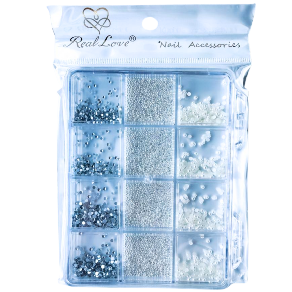 ENFEITE P/ UNHA REAL LOVE GOS210 STRASS/CAVIAR/PEROLA (EMB C/12)