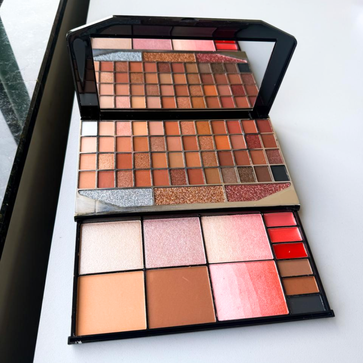 Desenvolvida para aplicação no rosto, a paleta conta com três seções que facilitam a organização e o acesso às cores. Seu estojo elegante e prático garante que você tenha tudo à mão, tornando a experiência de maquiagem ainda mais agradável.